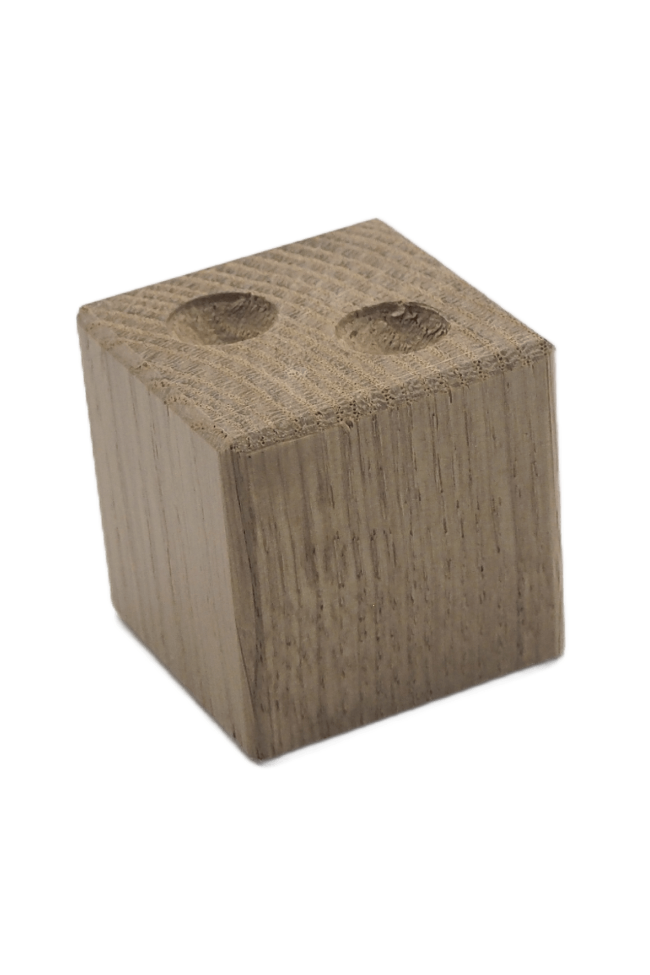 Drewniana noga meblowa, wykonana z wysokiej jakości drewna dębowego, o kształcie sześcianu, o wysokości 45 mm i przekroju 45×45 mm. wykonana z wysokiej jakości drewna bukowego. Noga meblowa posiada dwa otwory, umożliwiające montaż za pomocą wkrętów.