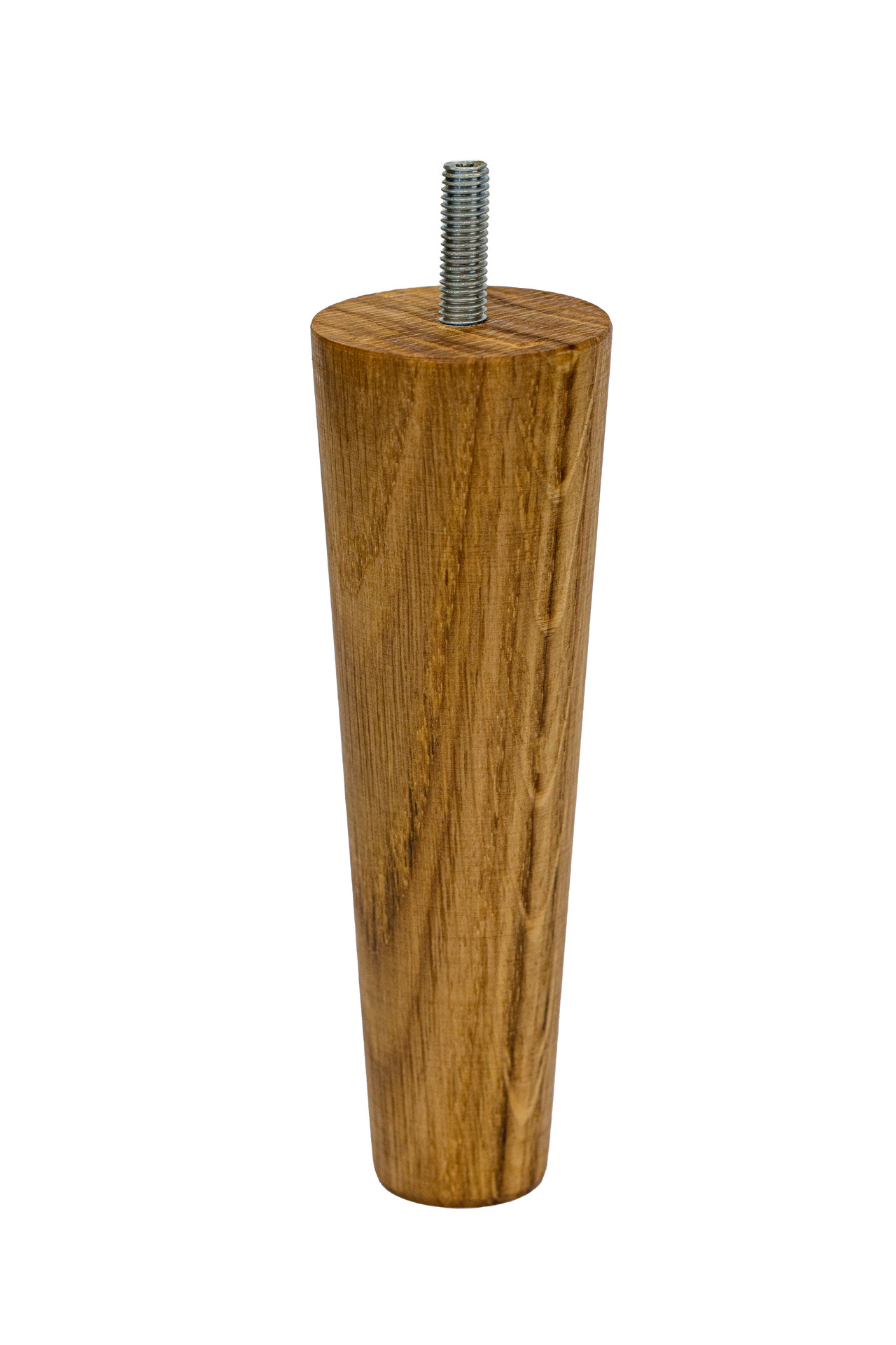 Stożkowaty kształt nogi nadaje jej smukły i elegancki wygląd, szersza podstawa zwęża się stopniowo ku dołowi. Drewno dębowe, z którego została wykonana, charakteryzuje się dużą twardością i wytrzymałością, co sprawia, że noga jest solidna i odporna na uszkodzenia. Noga drewniana o kształcie stożka jest zdecydowanie bardziej subtelna od nóg prostokątnych. Nadaje meblom lekkości, przy zachowaniu ich odpowiedniej stabilności.