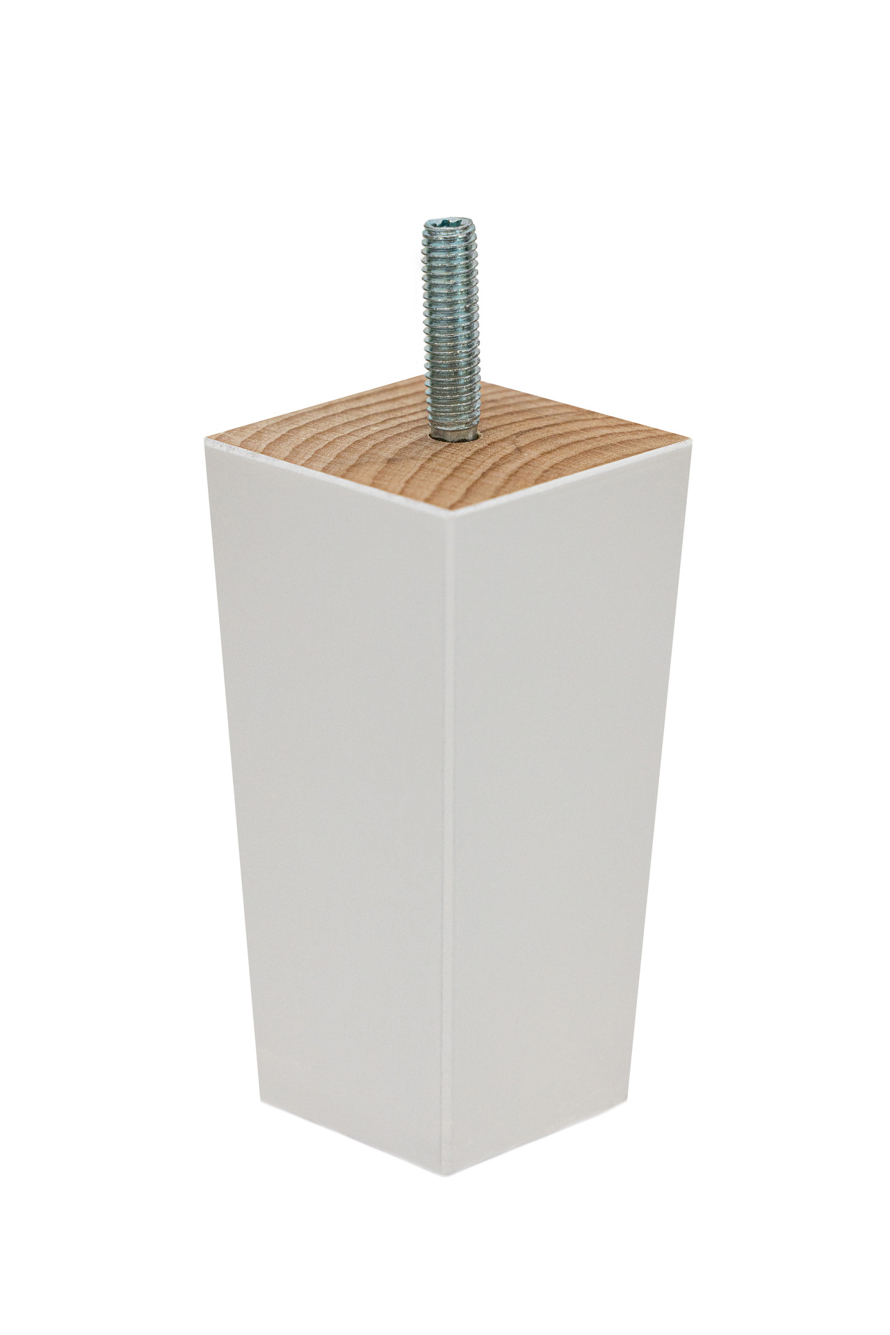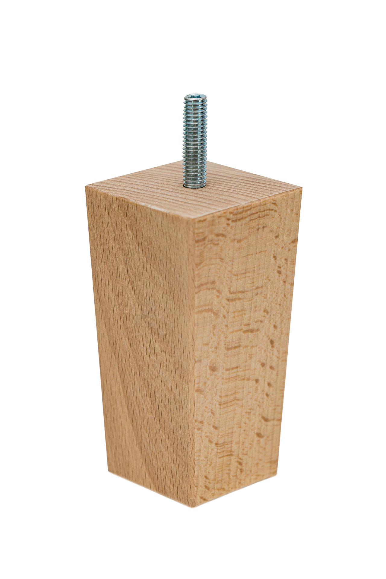 Noga meblowa w kształcie piramidy, wykonana z wysokiej jakości drewna bukowego, o wysokości 100 mm, przekroju podstawy górnej 50×50 mm i dolnej 40×40 mm. Noga meblowa posiada wkręconą śrubę z gwintem metrycznym M8, która wystaje 25 mm. Noga nie wymaga skomplikowanego montażu. Dzięki wkręconej szpilce, może być zamontowana w meblu w łatwy sposób za pomocą: blachy montażowej, nakrętki pazurkowej, bądź nakrętki rampy. Niezbędne akcesoria montażowe znajdują się także w naszej ofercie.