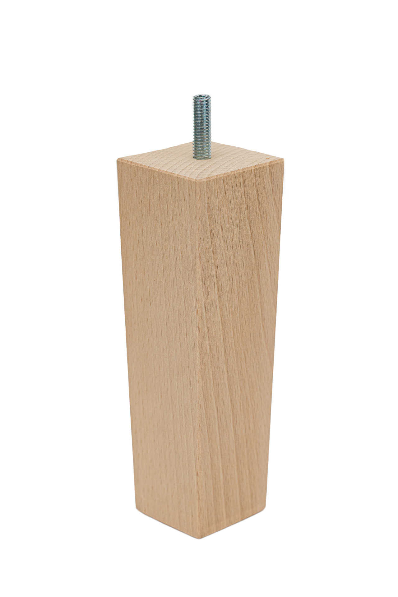 Noga meblowa w kształcie piramidy, wykonana z wysokiej jakości drewna bukowego, o wysokości 160 mm, przekroju podstawy górnej 50×50 mm i dolnej 40×40 mm. Noga meblowa posiada wkręconą śrubę z gwintem metrycznym M8, która wystaje 25 mm. Noga nie wymaga skomplikowanego montażu. Dzięki wkręconej szpilce, może być zamontowana w meblu w łatwy sposób za pomocą: blachy montażowej, nakrętki pazurkowej, bądź nakrętki rampy. Niezbędne akcesoria montażowe znajdują się także w naszej ofercie.