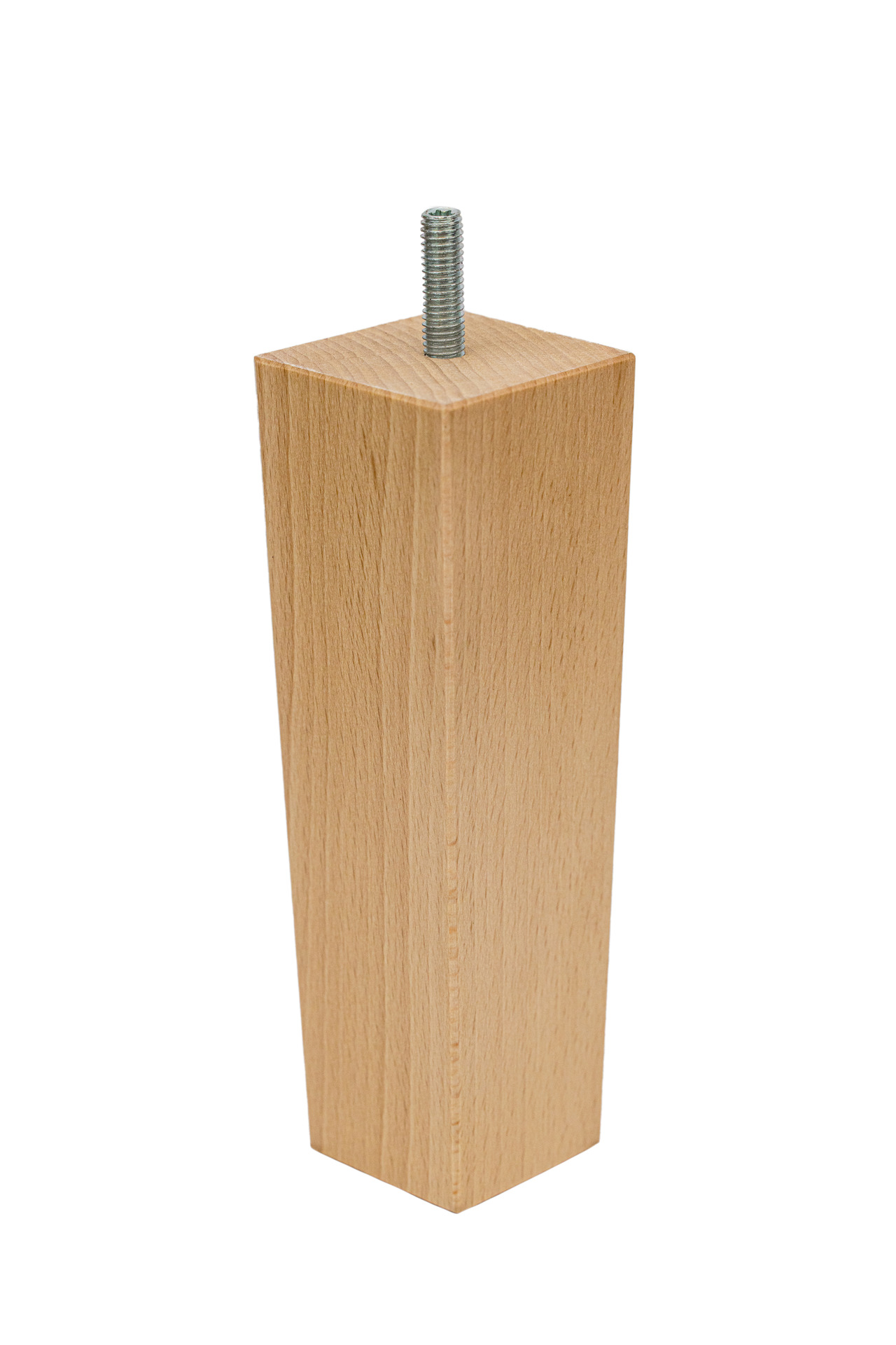 Noga meblowa w kształcie piramidy, wykonana z wysokiej jakości drewna bukowego, o wysokości 160 mm, przekroju podstawy górnej 50×50 mm i dolnej 40×40 mm. Noga meblowa posiada wkręconą śrubę z gwintem metrycznym M8, która wystaje 25 mm. Noga nie wymaga skomplikowanego montażu. Dzięki wkręconej szpilce, może być zamontowana w meblu w łatwy sposób za pomocą: blachy montażowej, nakrętki pazurkowej, bądź nakrętki rampy. Niezbędne akcesoria montażowe znajdują się także w naszej ofercie.