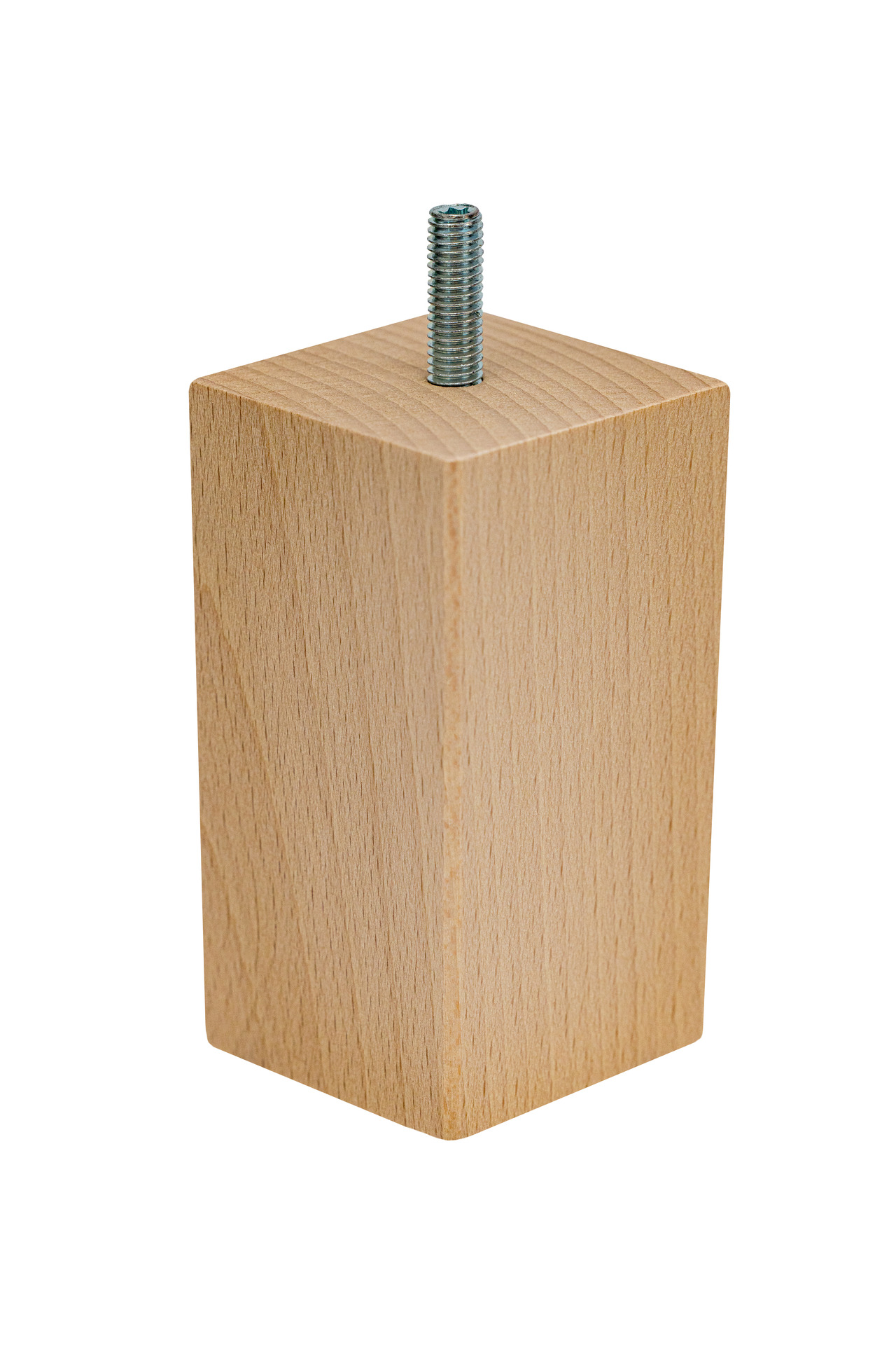 Noga meblowa prostokątna kostka, wykonana z wysokiej jakości drewna bukowego, o wysokości 100 mm i przekroju 55×55 mm. Noga meblowa posiada wkręconą śrubę z gwintem metrycznym M8, która wystaje 25 mm. Noga nie wymaga skomplikowanego montażu. Dzięki wkręconej szpilce, może być zamontowana w meblu w łatwy sposób za pomocą: blachy montażowej, nakrętki pazurkowej, bądź nakrętki rampy. Niezbędne akcesoria montażowe znajdują się także w naszej ofercie.