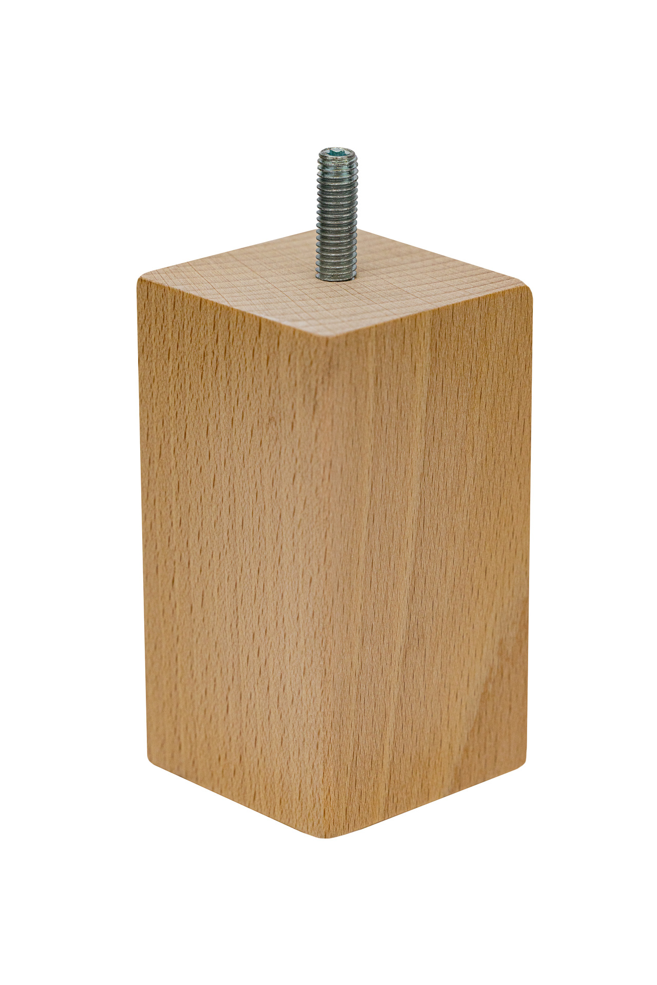 Noga meblowa prostokątna kostka, wykonana z wysokiej jakości drewna bukowego, o wysokości 100 mm i przekroju 55×55 mm. Noga meblowa posiada wkręconą śrubę z gwintem metrycznym M8, która wystaje 25 mm. Noga nie wymaga skomplikowanego montażu. Dzięki wkręconej szpilce, może być zamontowana w meblu w łatwy sposób za pomocą: blachy montażowej, nakrętki pazurkowej, bądź nakrętki rampy. Niezbędne akcesoria montażowe znajdują się także w naszej ofercie.