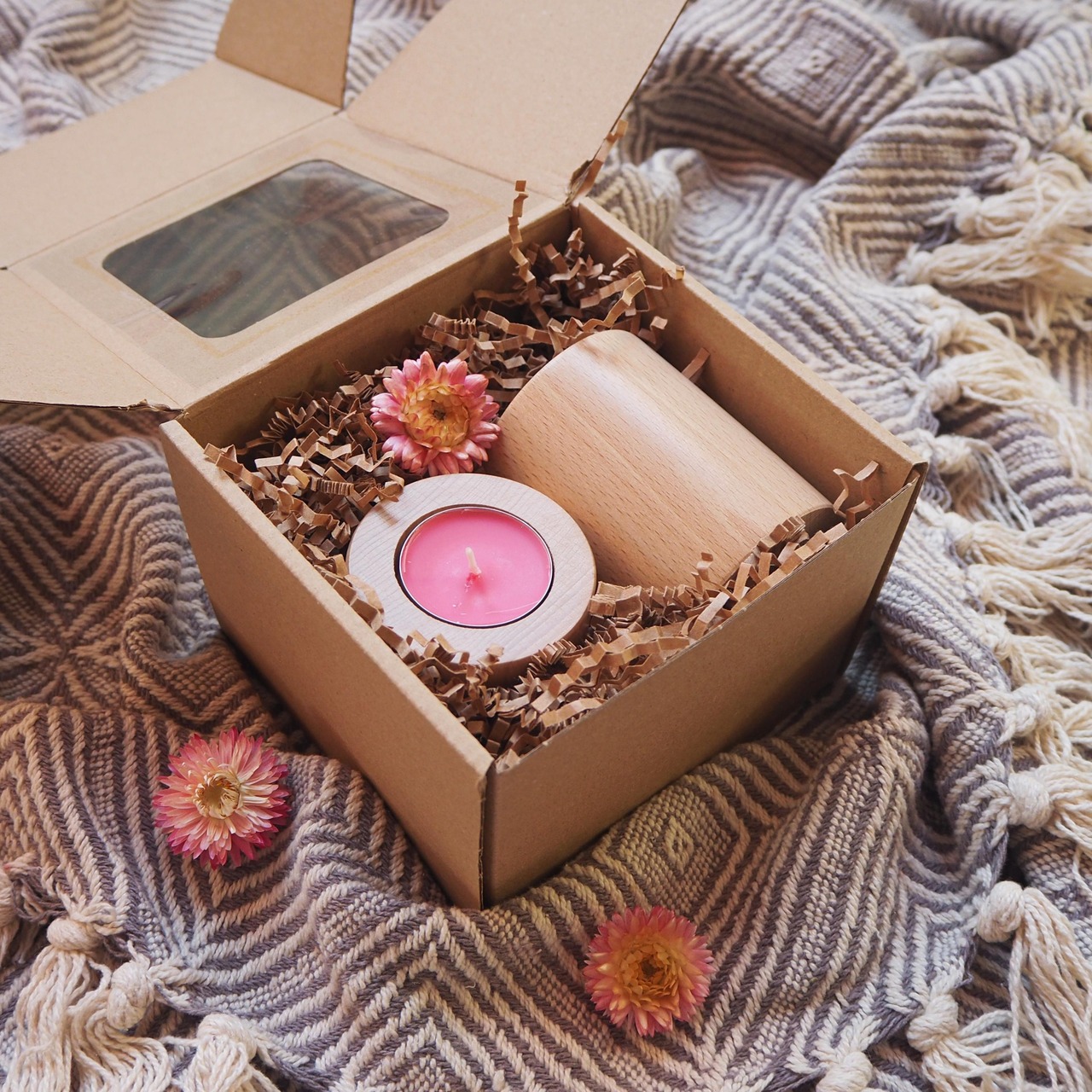 Zgodnie ze współczesnym trendem proekologicznym, świecznik zapakowany jest w eleganckie, eko pudełko z okienkiem, przez które widać zawartość prezentu. W środku znajduje się papierowy wypełniacz o delikatnie brązowym odcieniu, który doskonale komponuje się z kolorystyką naturalnego drewna bukowego. Pudełko może zostać oplecione sznurkiem jutowym bądź kolorową wstążką – wybór pozostawiamy Tobie. Do sznurka/wstążki dołączamy eko bilecik, na którym możesz zapisać kilka miłych słów obdarowywanej osobie bądź po prostu umieścić życzenia. Całość zapakowana jest niezwykle starannie, z dbałością o każdy szczegół.