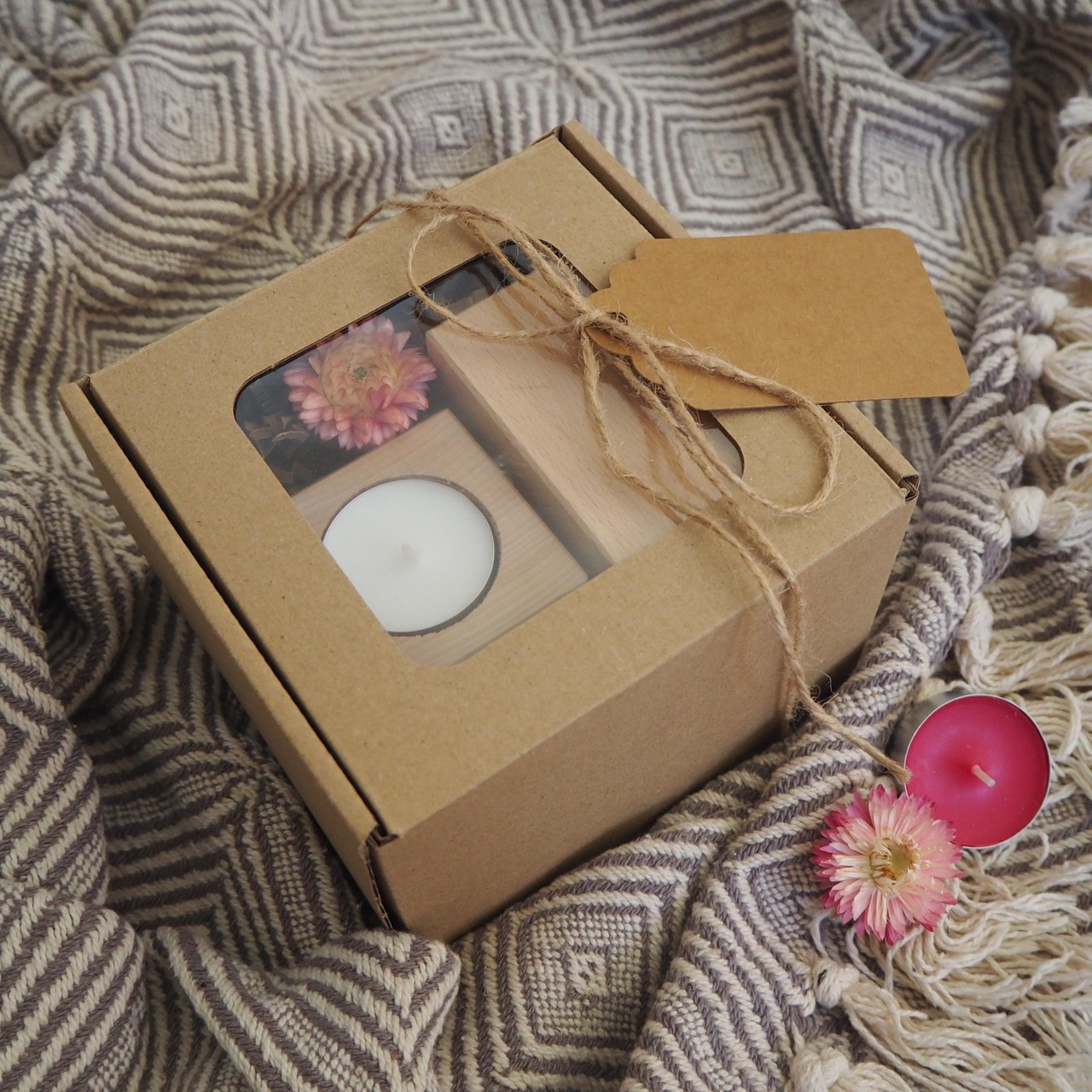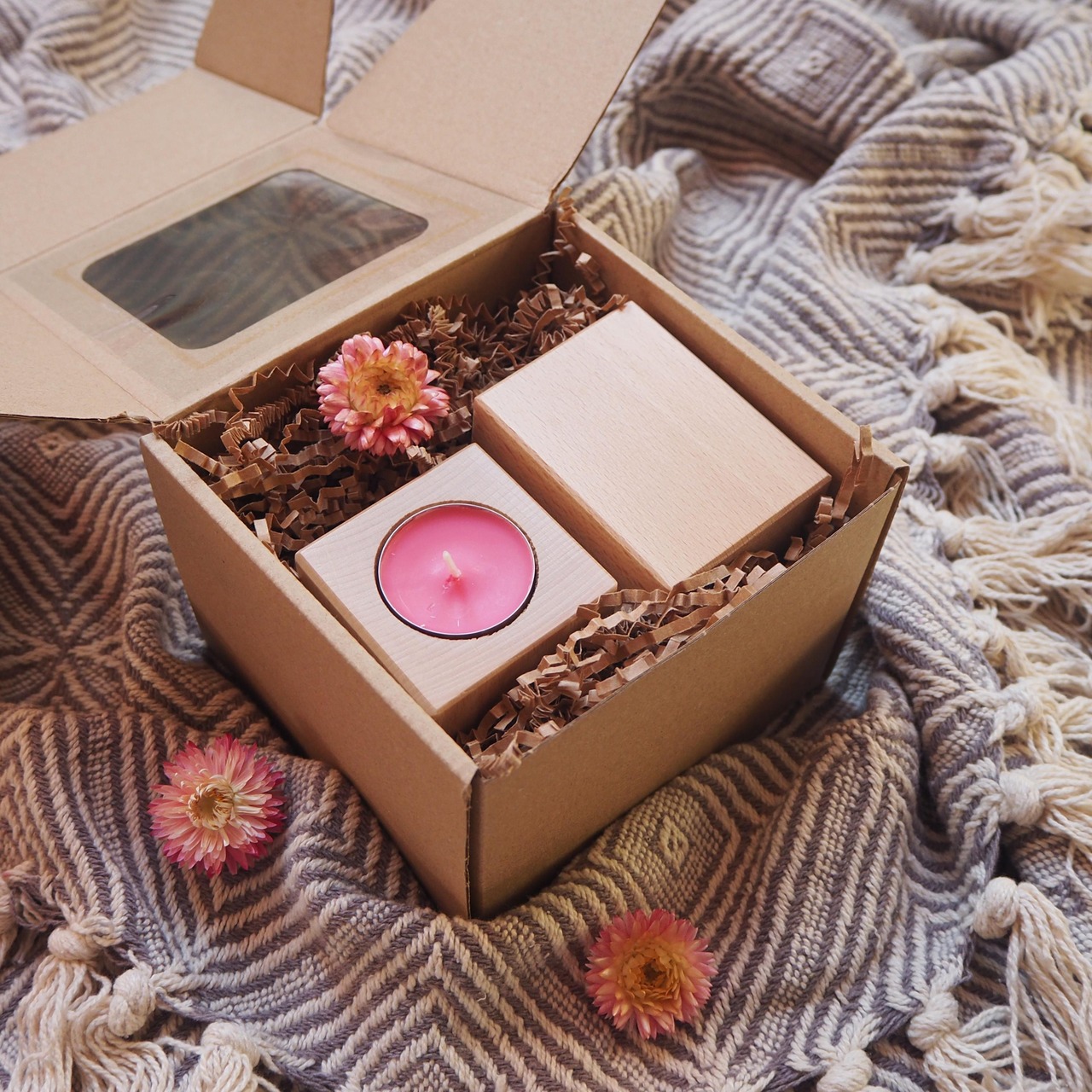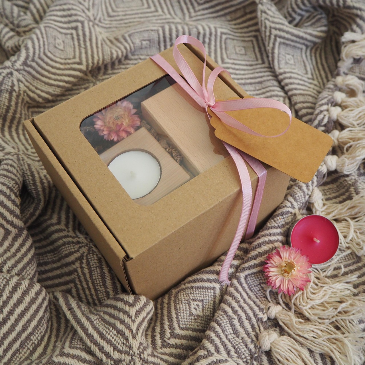 Zgodnie ze współczesnym trendem proekologicznym, świeczniki zapakowane są w eleganckie, eko pudełko z okienkiem, przez które widać zawartość prezentu. W środku znajduje się papierowy wypełniacz o delikatnie brązowym odcieniu, który doskonale komponuje się z kolorystyką naturalnego drewna bukowego. Pudełko może zostać oplecione sznurkiem jutowym bądź kolorową wstążką – wybór pozostawiamy Tobie. Do sznurka/wstążki dołączamy eko bilecik, na którym możesz zapisać kilka miłych słów obdarowywanej osobie bądź po prostu umieścić życzenia. Całość zapakowana jest niezwykle starannie, z dbałością o każdy szczegół.