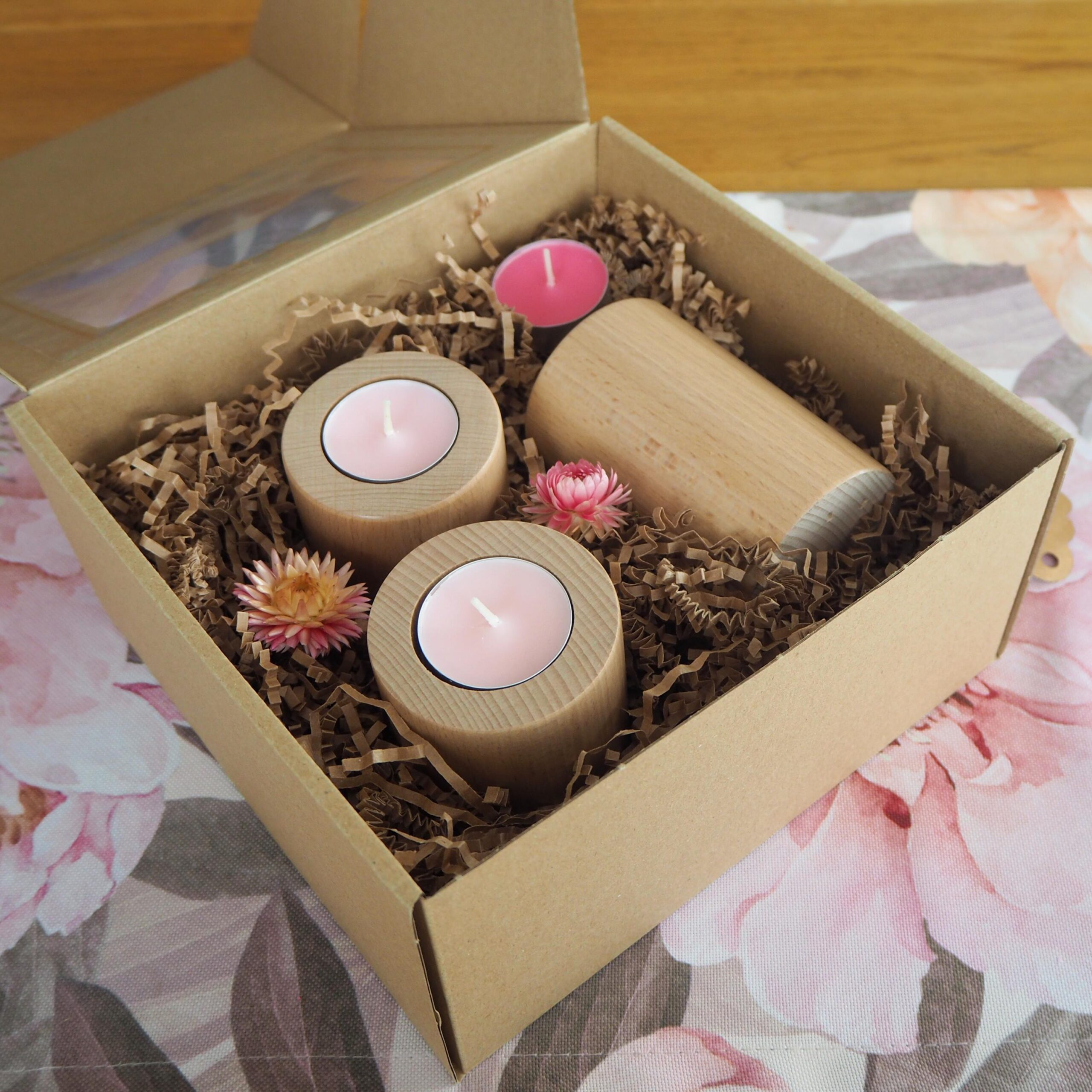 Zgodnie ze współczesnym trendem proekologicznym, świecznik zapakowany jest w eleganckie, eko pudełko z okienkiem, przez które widać zawartość prezentu. W środku znajduje się papierowy wypełniacz o delikatnie brązowym odcieniu, który doskonale komponuje się z kolorystyką naturalnego drewna bukowego. Pudełko może zostać oplecione sznurkiem jutowym bądź kolorową wstążką – wybór pozostawiamy Tobie. Do sznurka/wstążki dołączamy eko bilecik, na którym możesz zapisać kilka miłych słów obdarowywanej osobie bądź po prostu umieścić życzenia. Całość zapakowana jest niezwykle starannie, z dbałością o każdy szczegół.