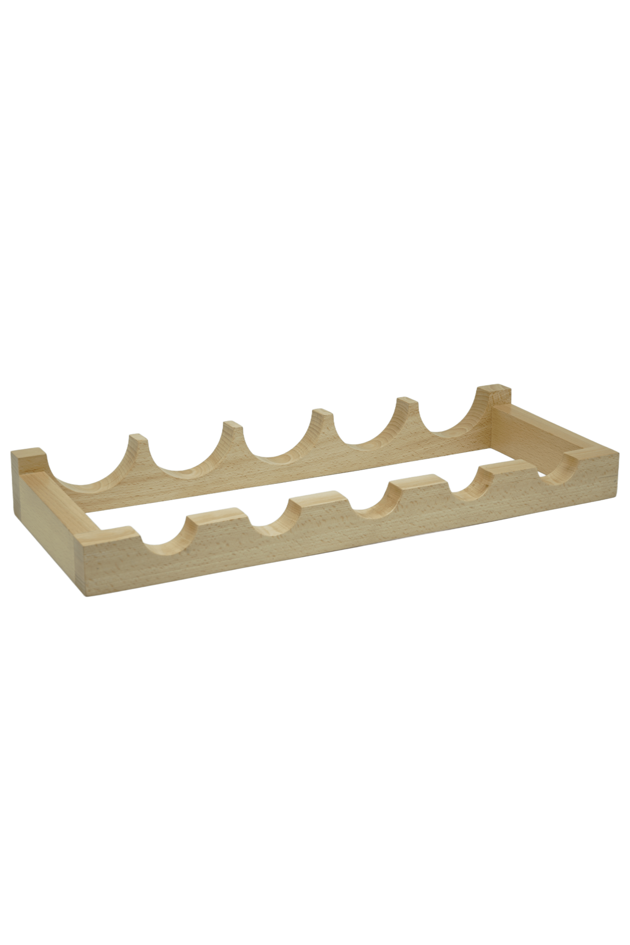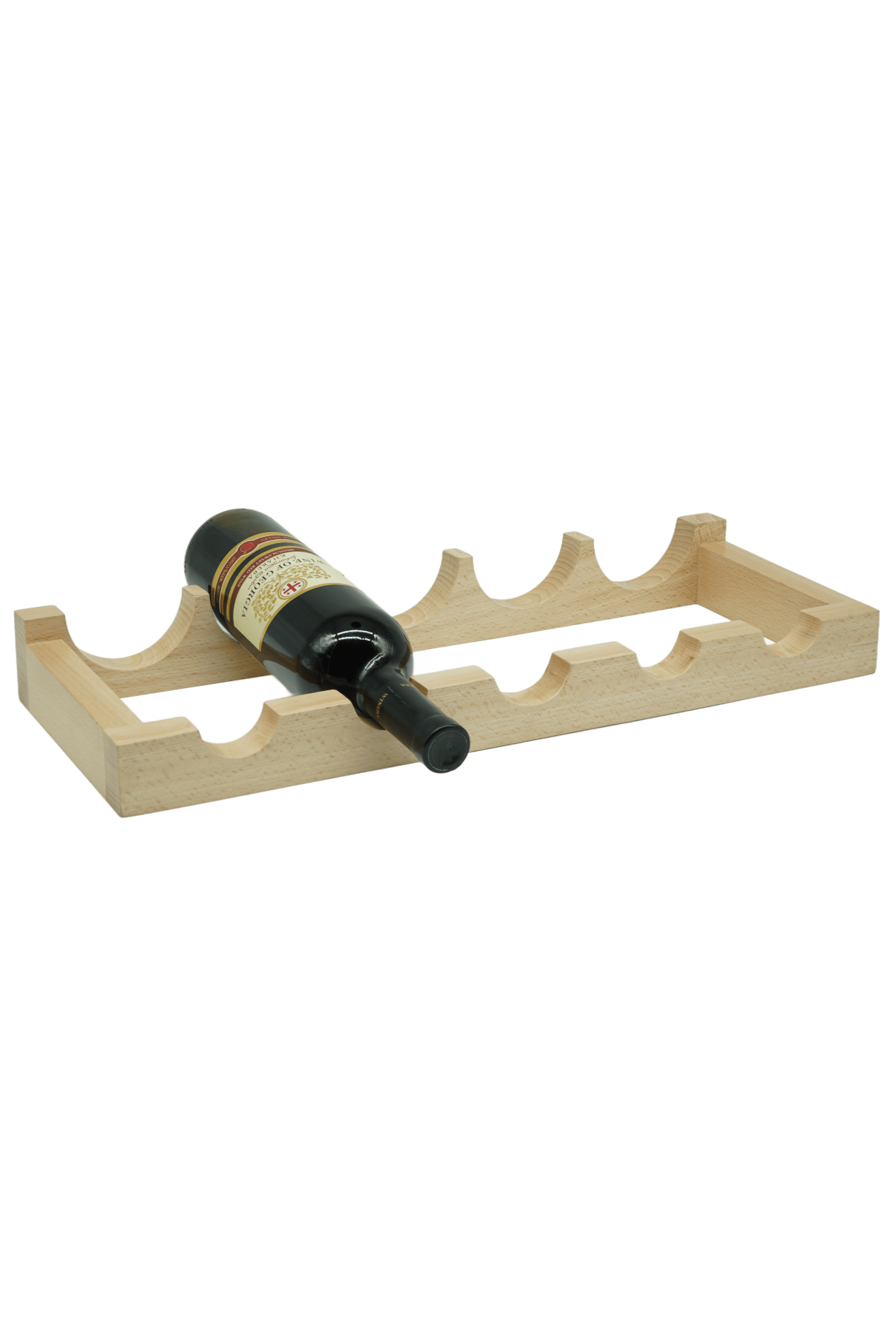 Drewniany stojak na wino, wykonany z wysokiej jakości drewna bukowego, o długości 51,5 cm, szerokości 20,5 cm i maksymalnej wysokości 6 cm, który pomieści 5 butelek wina/szampana.
