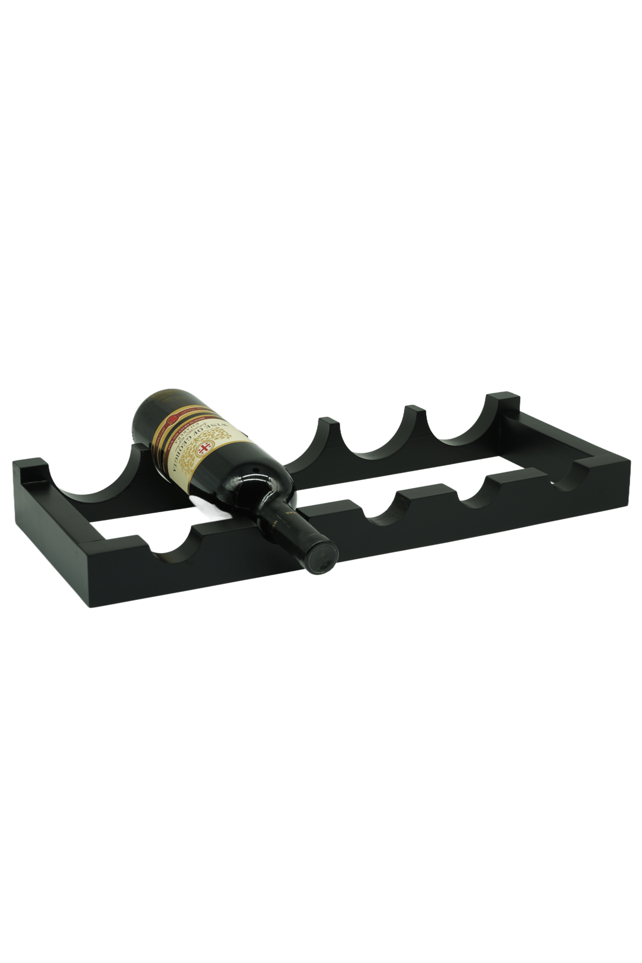 Drewniany stojak na wino, wykonany z wysokiej jakości drewna bukowego, o długości 51,5 cm, szerokości 20,5 cm i maksymalnej wysokości 6 cm, który pomieści 5 butelek wina/szampana.