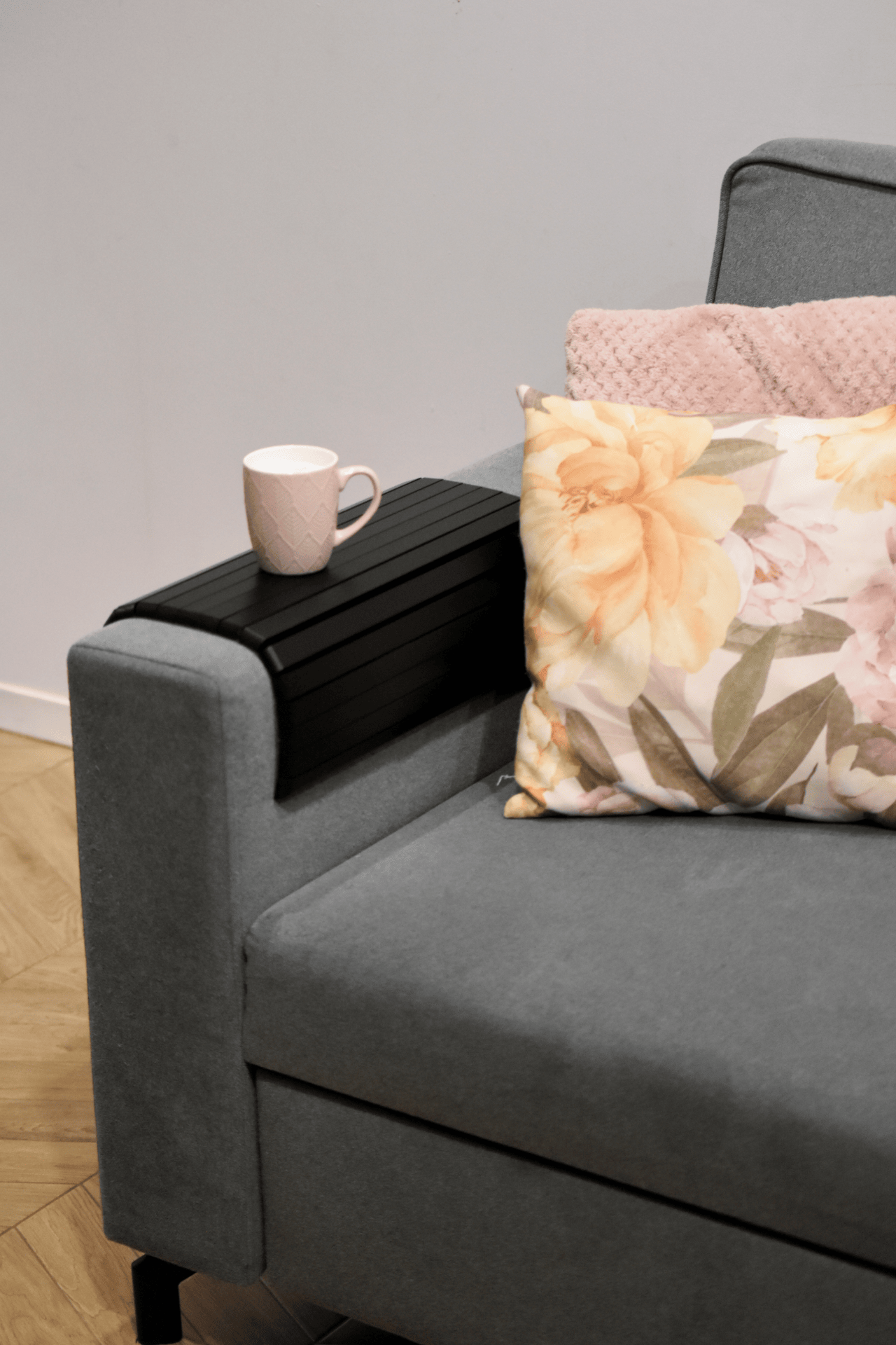 Jej łamany kształt sprawia, że łatwo dopasowuje się do boków mebla, stanowiąc stylowy dodatek do sofy lub dodatek do narożnika, który wzbogaca ich funkcjonalność. Jest to doskonałe rozwiązanie dla osób ceniących estetykę i praktyczność, a zarazem poszukujących sposobu na urozmaicenie swojego wnętrza o elegancki i naturalny akcent.