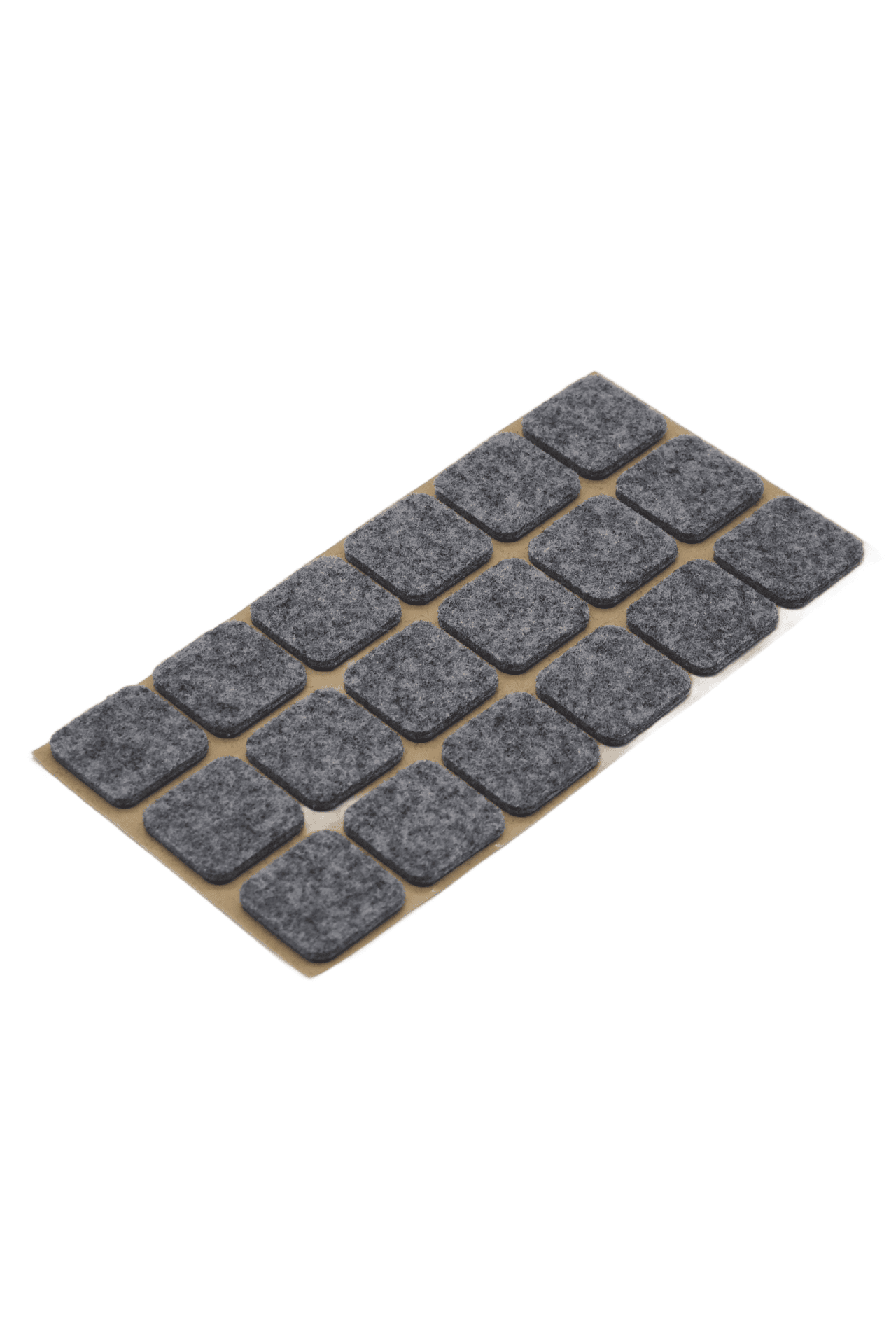 Podkładki filcowe o kształcie kwadratu o wymiarach 25×25 mm, grubości 3 mm, w kolorze szarym. Opakowanie zbiorcze posiada 18 szt. podkładek.