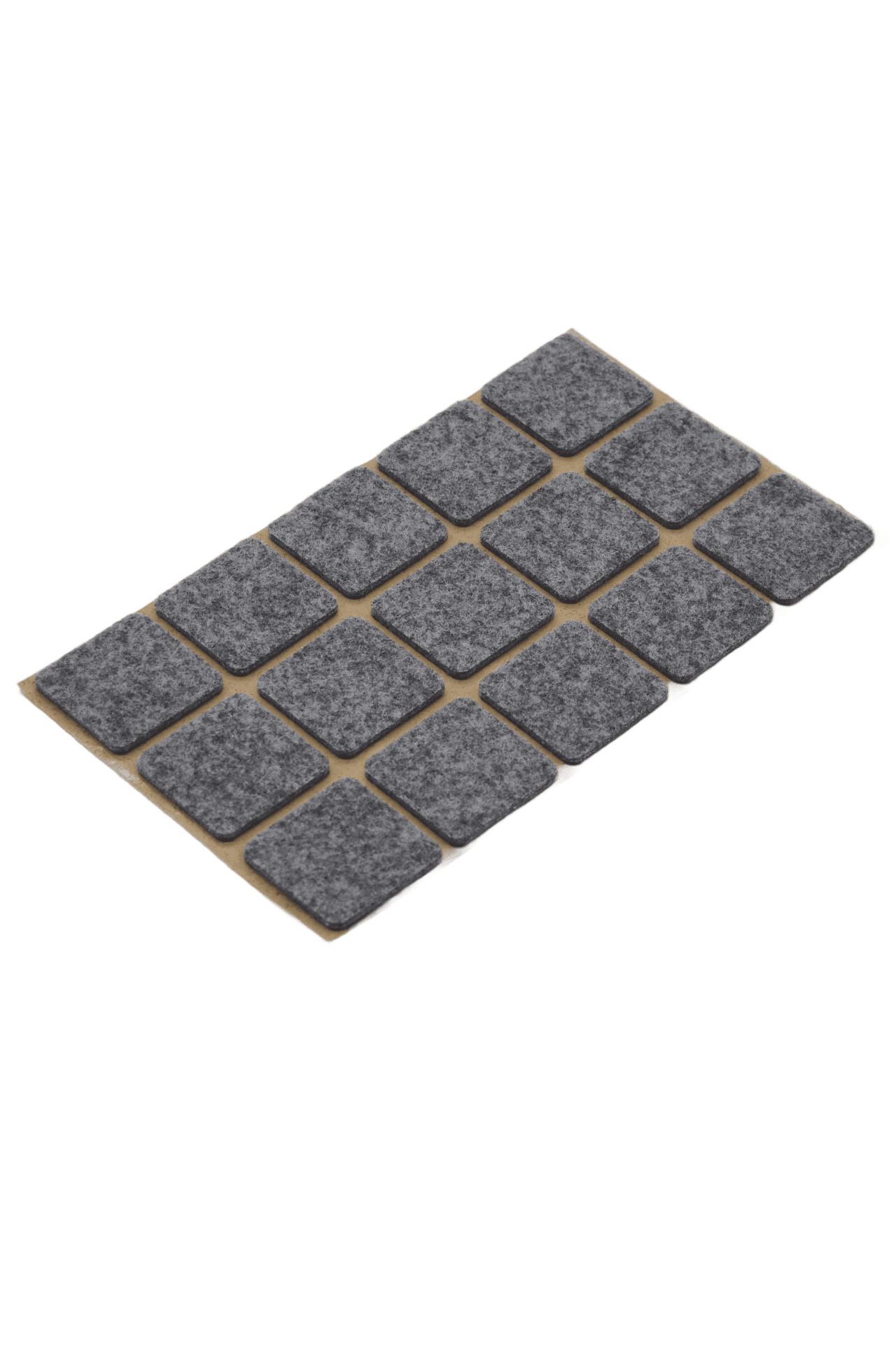 Podkładki filcowe o kształcie kwadratu o wymiarach 30×30 mm, grubości 3 mm, w kolorze szarym. Opakowanie zbiorcze posiada 15 szt. podkładek.