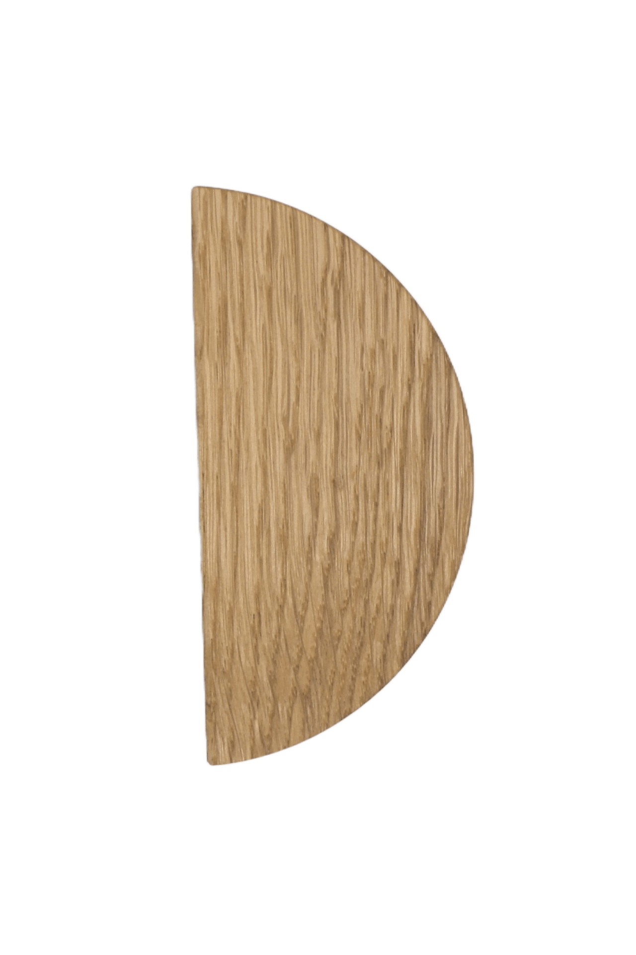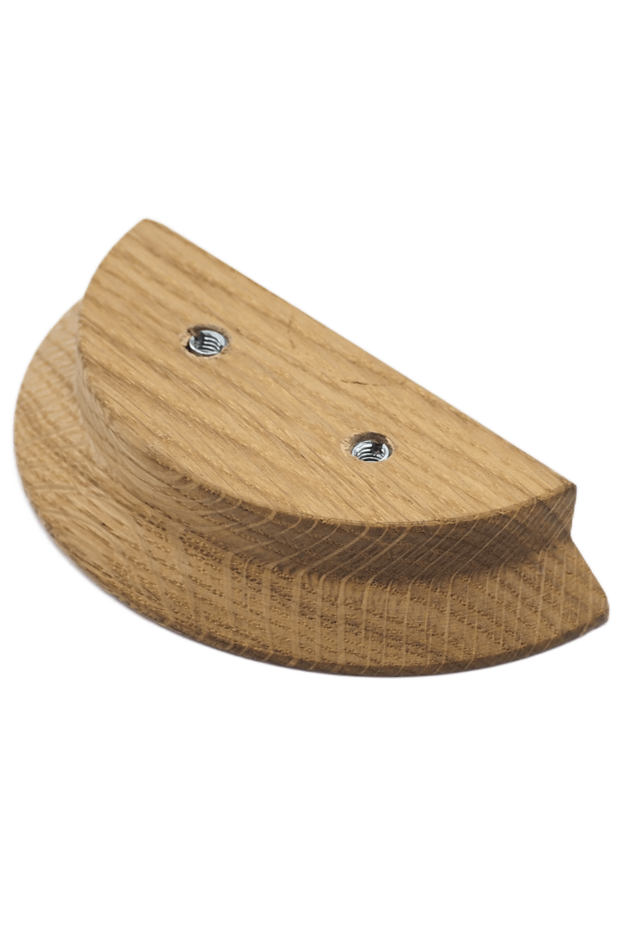 Uchwyt meblowy Półkole, wykonany z wysokiej jakości drewna dębowego, o długości całkowitej 101 mm i rozstawie otworów montażowych 32 mm, posiada wkręcone mufy na wkręt metryczny. Dzięki takiemu rozwiązaniu uchwyt jest solidnie przymocowany do mebla i niweluje ryzyko poluzowania się.
